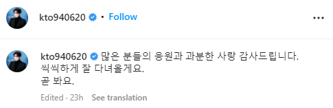 강태오 배우님은 대한민국 육군 제 37보병사단에서 현재 복무중인데요. 전역까지 546일 남았다고 하네요. 안전하게 복무 마치시길 소망하며 아래 강태오 배우님 관련 링크들 첨부해드리며 글 마무리 하겠습니다. 감사합니다.